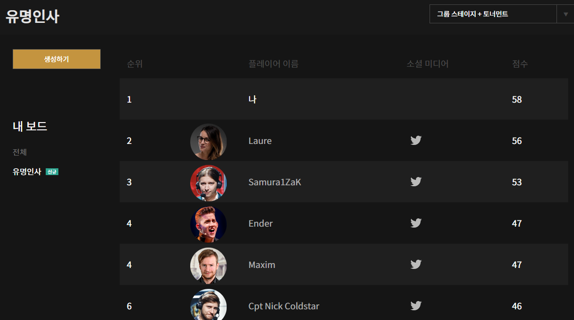 토너먼트만 남겨둔 상태입니다..